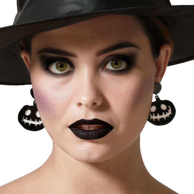 • Paire de boucles d'oreilles en forme de citrouille noire. Accessoire frappant et thématique.