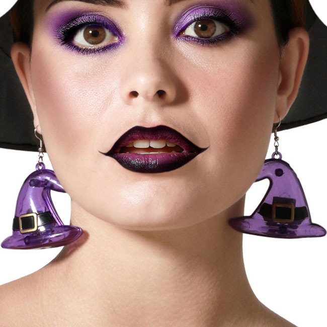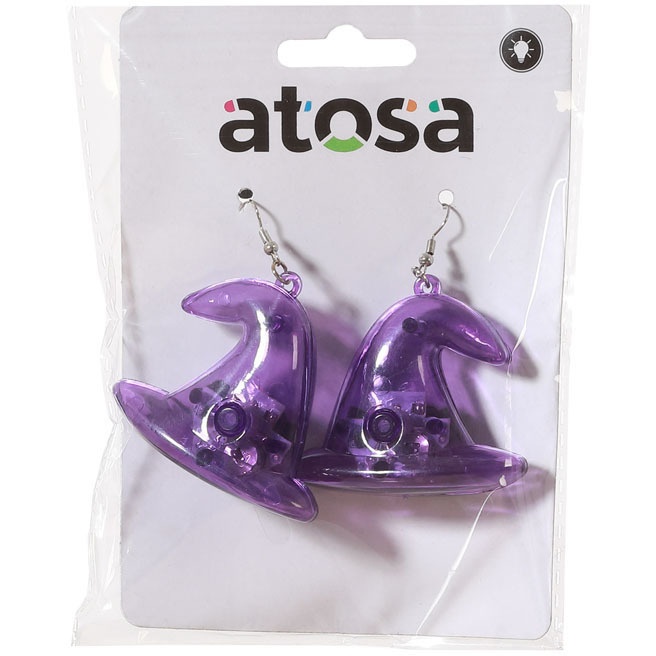 • Boucles d'oreilles en forme de chapeau de sorcière avec lumière LED intégrée.