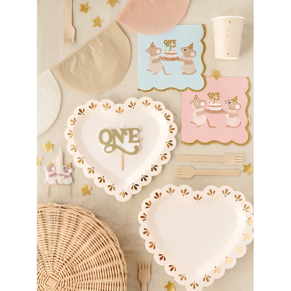 ONE en finition or froid: offrez une touche élégante à la pièce montée du premier anniversaire. Son lettrage saisissant et lisible se démarque sur les photos et lors des célébrations. Pose facile grâce à sa tige intégrée en bois. Elle apporte une finition festive et sophistiquée à toute décoration d'anniversaire.