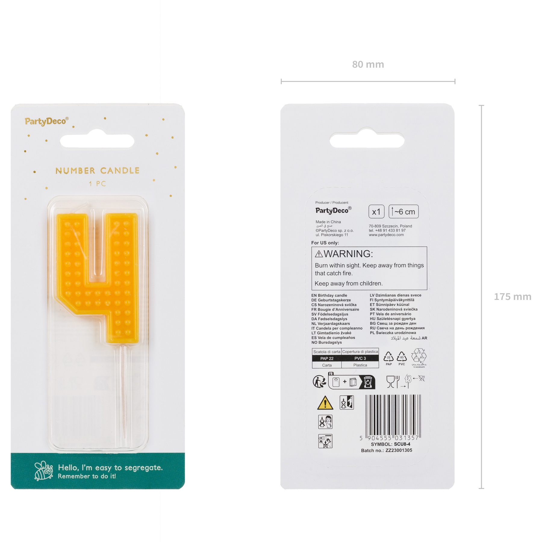 Bougie de chiffre Lego de 6 cm - 1 unité