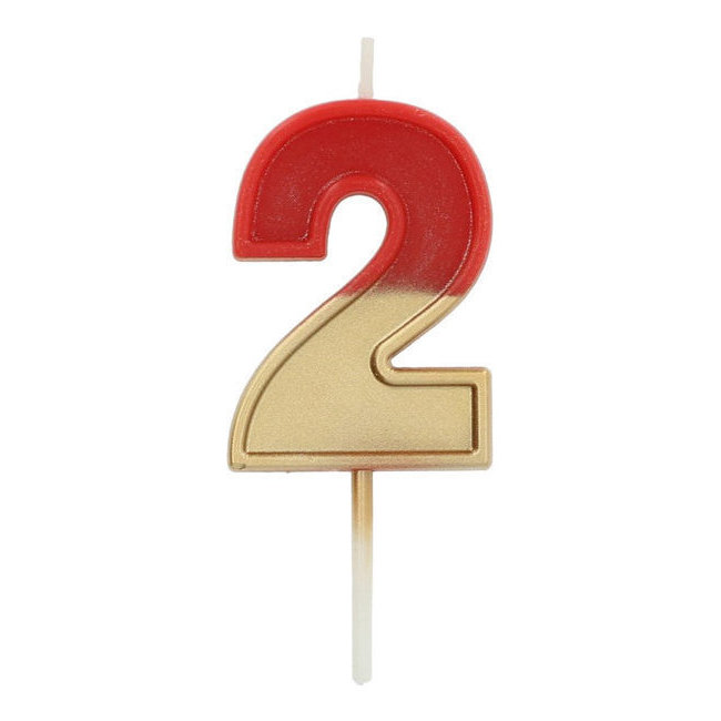 Bougie à chiffre bicolore rouge-rose et doré de 5 cm