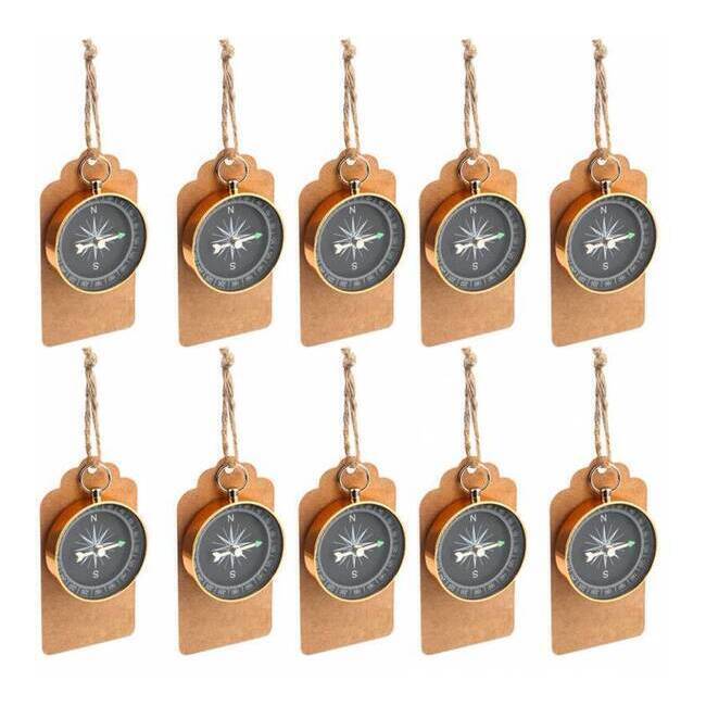 - La mini boussole est fabriquée en alliage d'aluminium, résistante et durable. Aspect original et exclusif avec une finition en or et noir, idéal pour offrir en tant que détail et cadeaux de fête, célébrations à thème voyage et décoration de table
