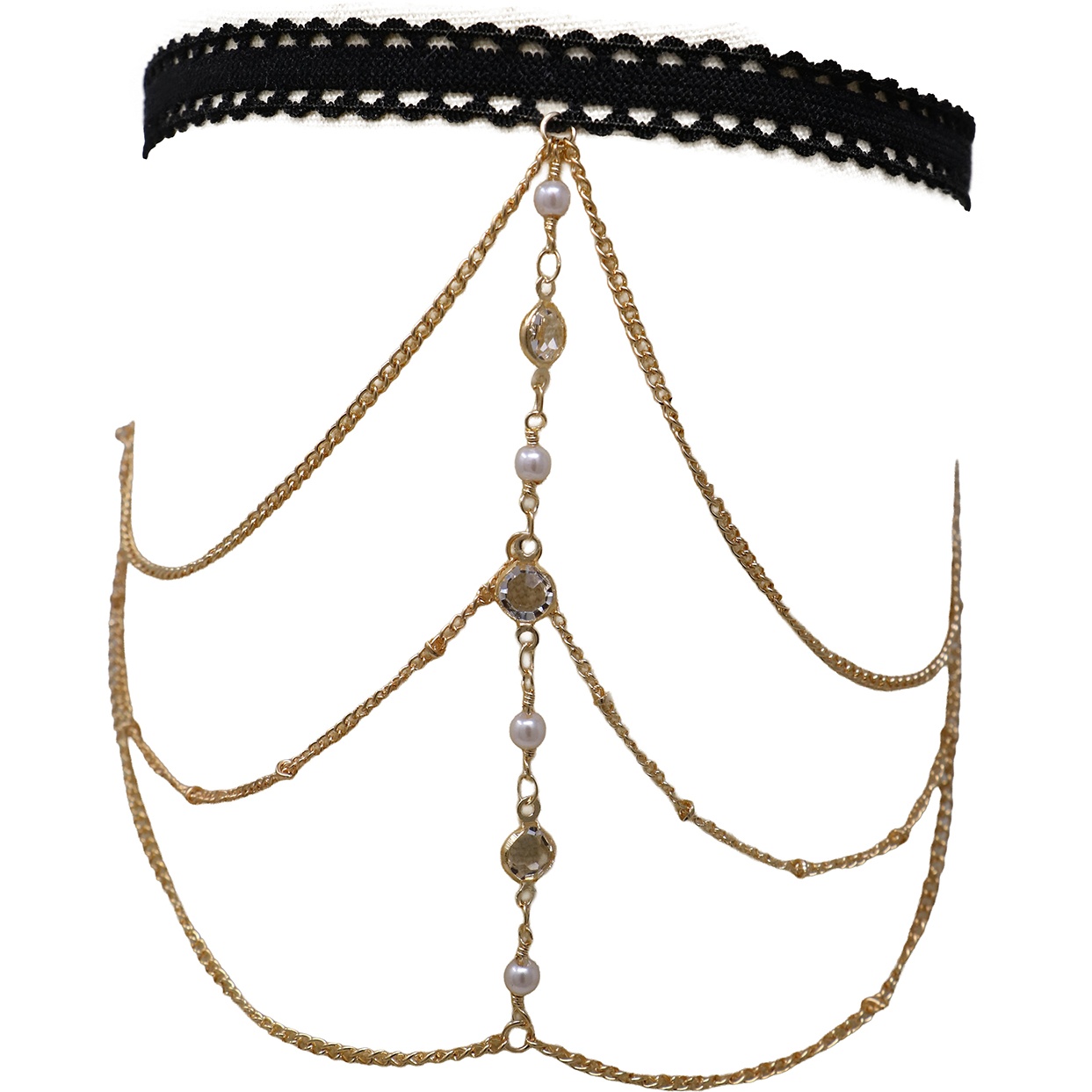- Bracelet de bras à superpositions: plusieurs chaînes pendantes créant un effet en cascade.