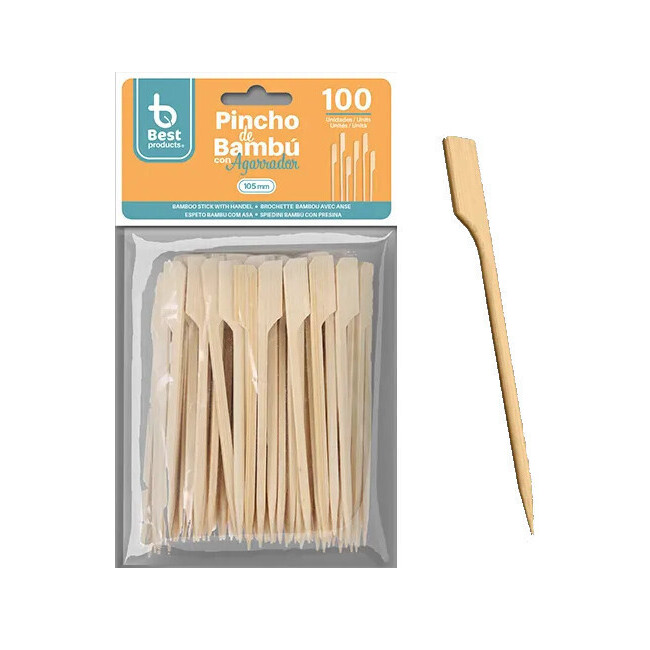 Brochettes de 10,5 cm en bambou avec manche plat - 100 unités