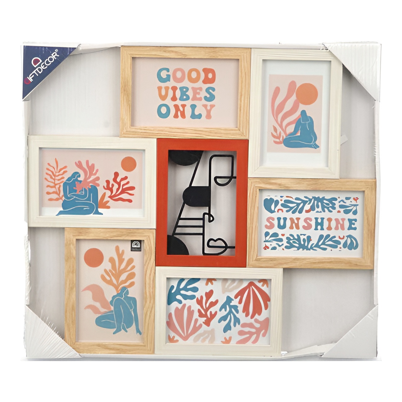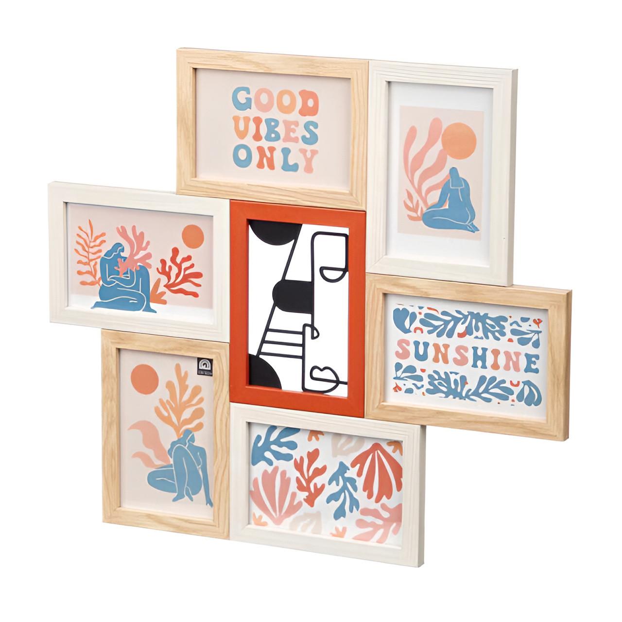 Cadre photo multicolore avec élément métallique pour 6 photos 10 x 15 cm