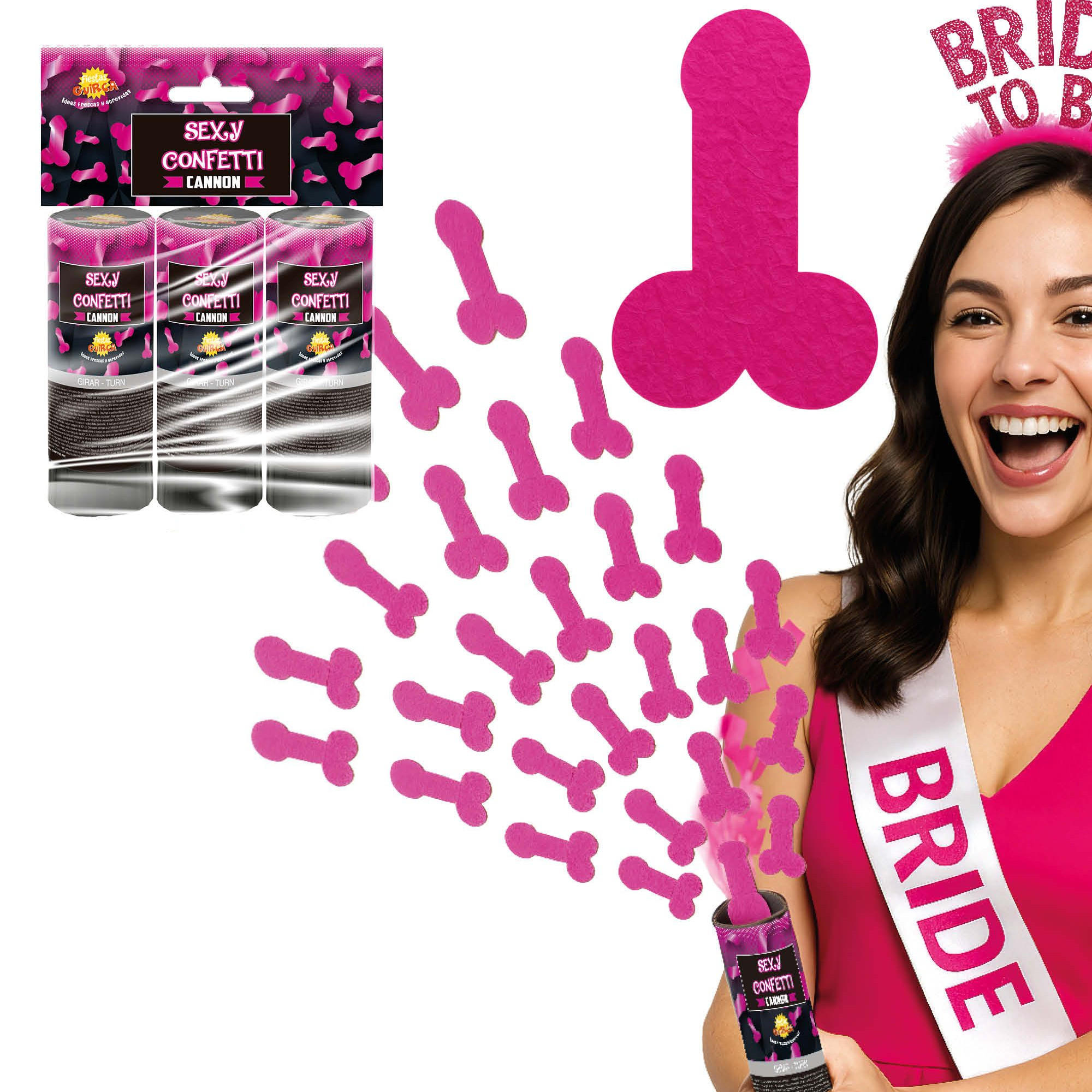 Canon de confettis en forme de pénis fuchsia - 10,5 cm (lot de 3)