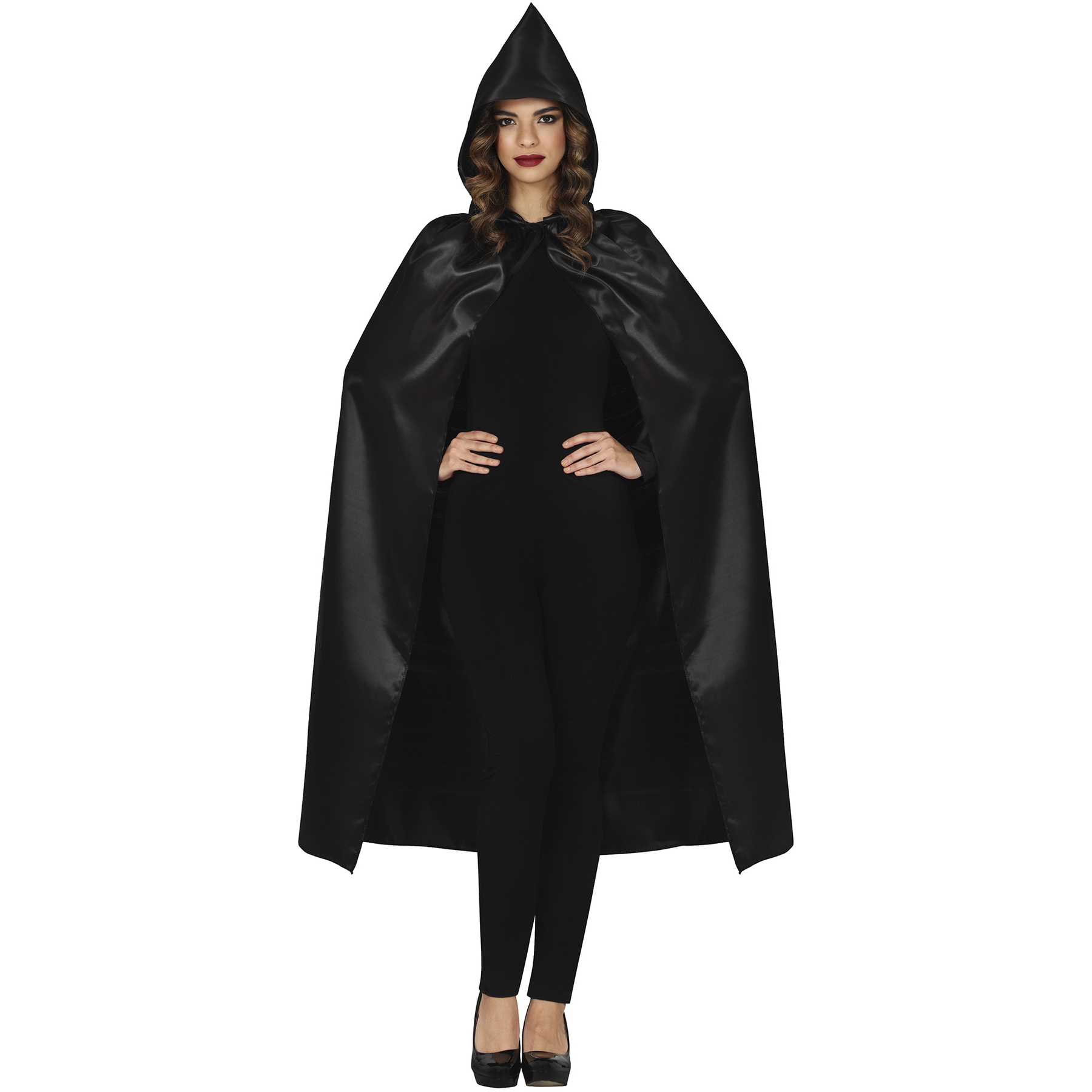 Cape noire avec capuche brillante pour adulte de 1,20 m