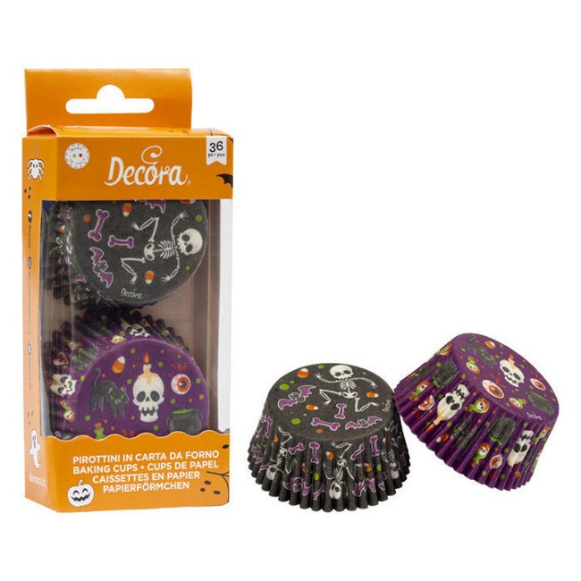 Capsules assorties pour cupcakes avec squelettes et motifs d'Halloween - Décorez - 36 unités