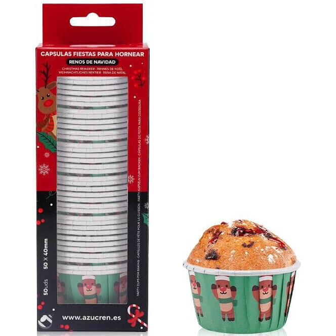 Capsules pour cupcakes de 5 cm avec des rennes de Noël - 50 unités