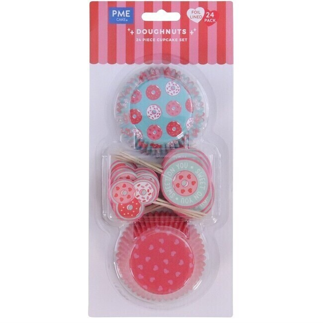 Capsules pour cupcakes avec pics donuts en forme de coeurs - PME - 24 unités