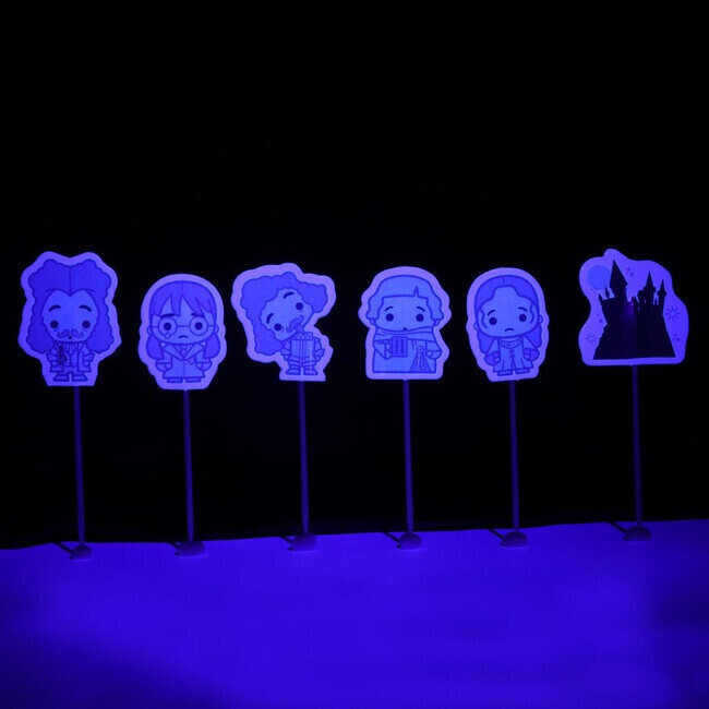 - Les toppers comprennent 6 designs différents: Mimi Geignarde, Baron Sanglant, Nick Quasi-Sans-Tête, Helena Serdaigle