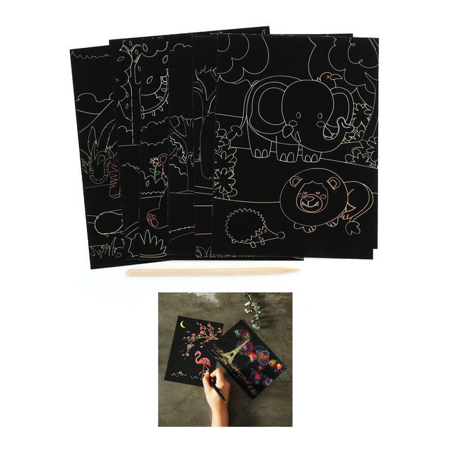 Cartes créatives à gratter sur le thème des animaux - 6 unités