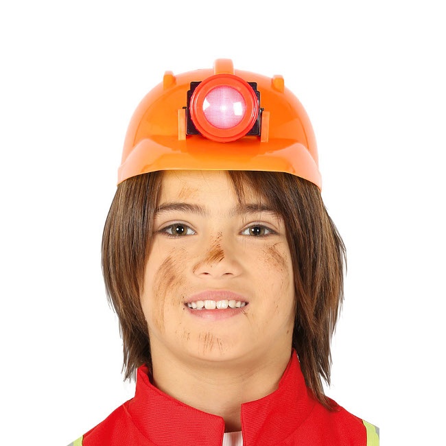 Casque d'ouvrier orange avec lumière pour enfants - 50 cm