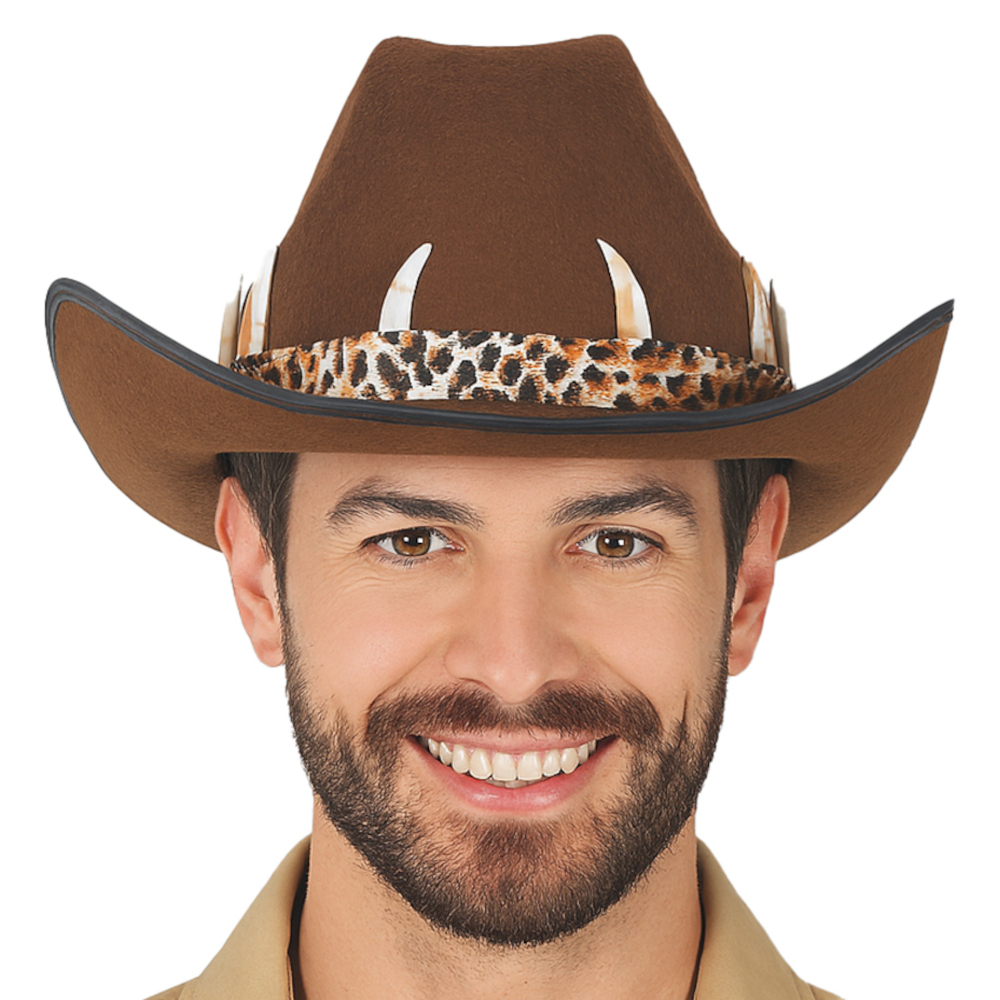 Chapeau de cow-boy à motif léopard avec ornements en forme de crocs