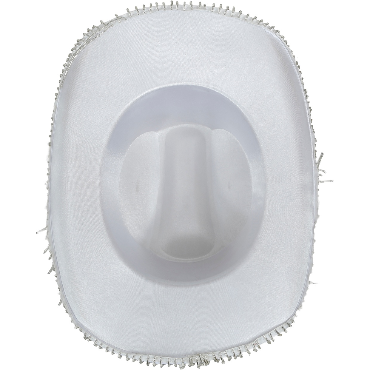 • Franges perlées tombantes depuis le bord du chapeau.
