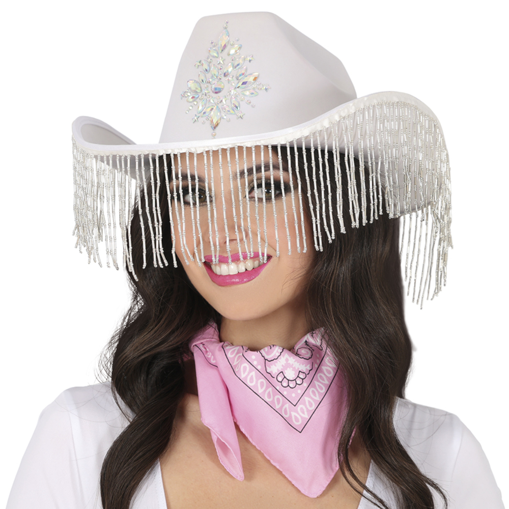 Chapeau de cowgirl blanc à franges