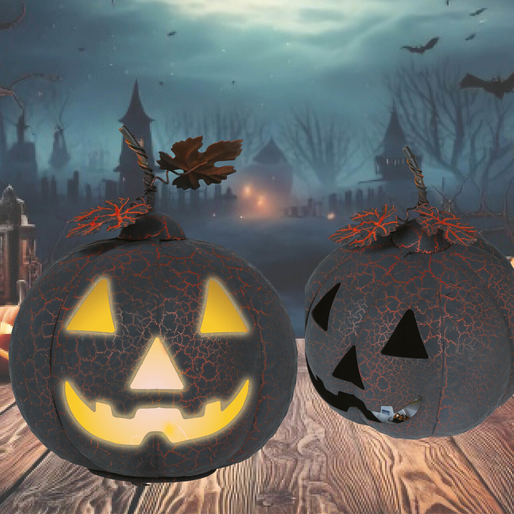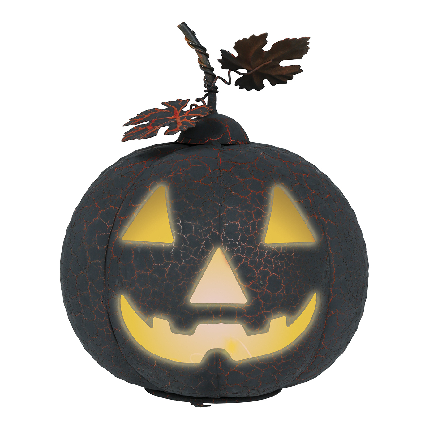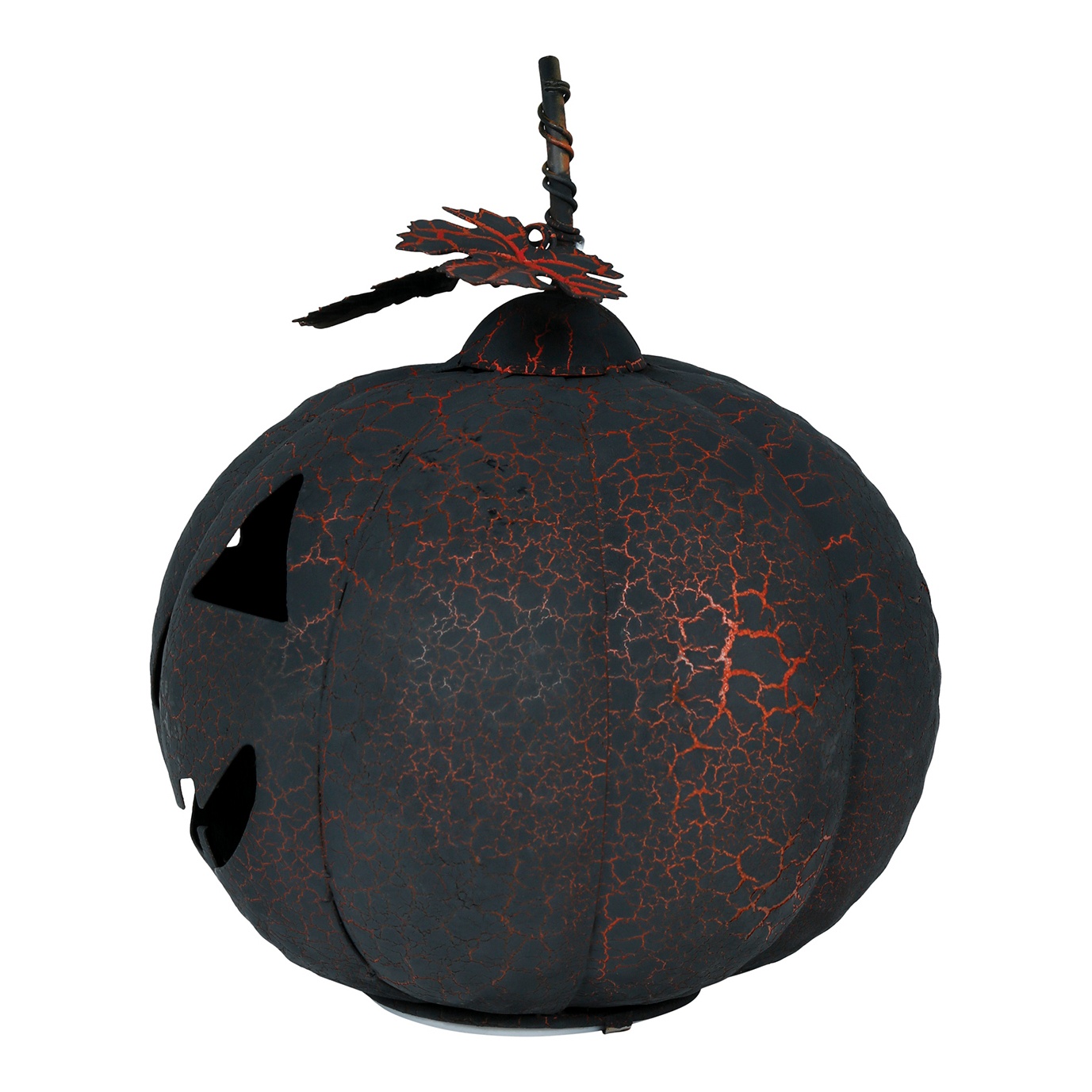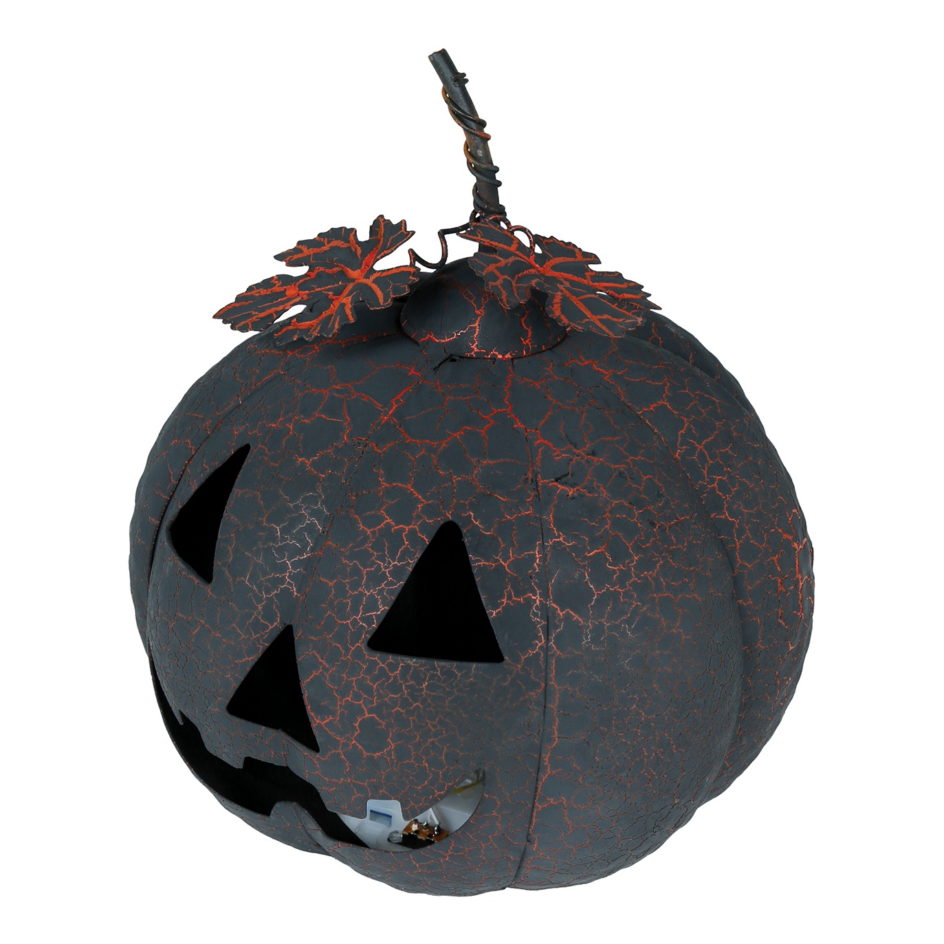 Citrouille noire et orange en métal avec lumière de 20 cm
