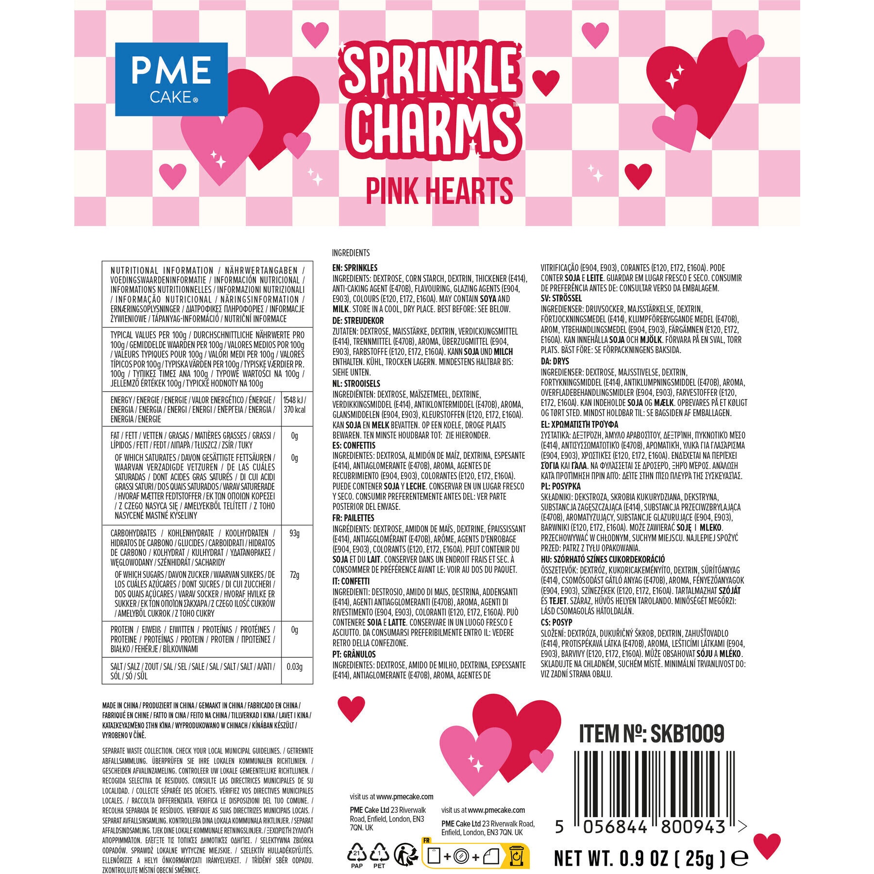 Ingrédients: dextrose, amidon de maïs, dextrine, épaississant (E414), anti-agglomérant (E470B), arôme, agents d'enrobage (E904, E903), colorants (E120, E160A, E172).