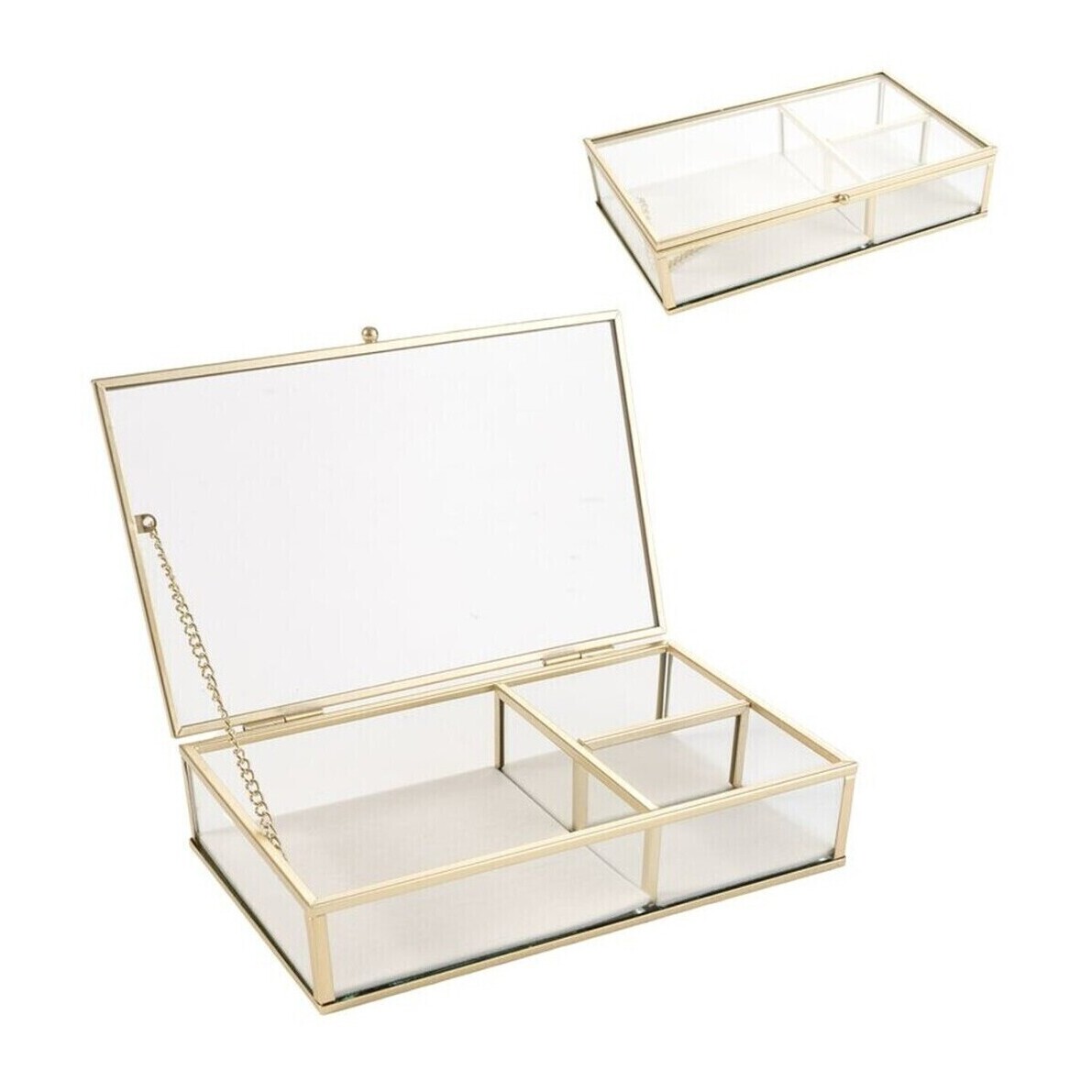 Coffret à bijoux en verre avec bord doré de 20 x 13 x 4,5 cm