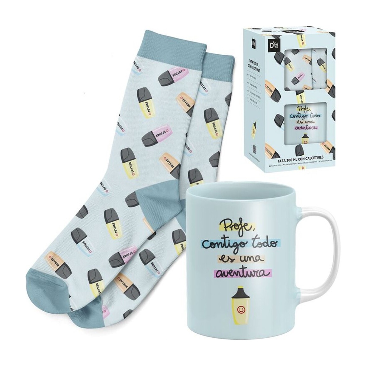 Coffret cadeau tasse et chaussettes - Professeur, avec vous, tout est une aventure