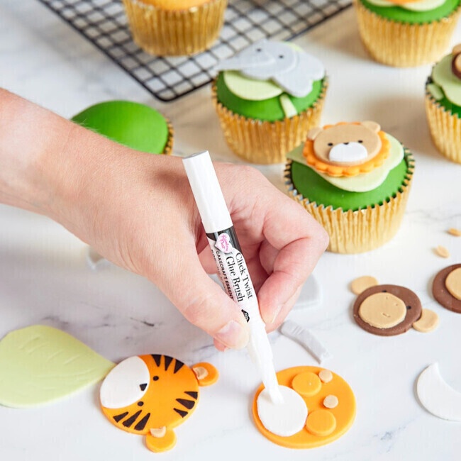 - Avec mécanisme "clic": il suffit de tourner l'extrémité du bouchon jusqu'à ce que la colle remplisse la pointe du pinceau.