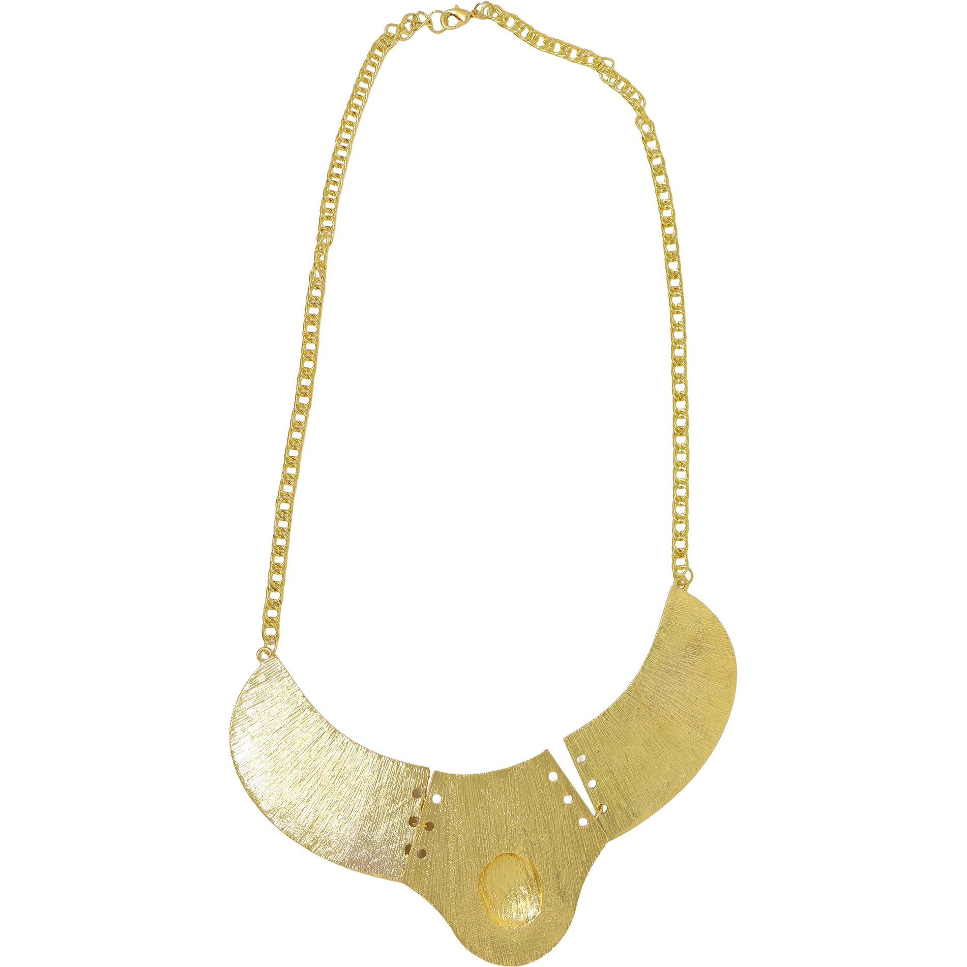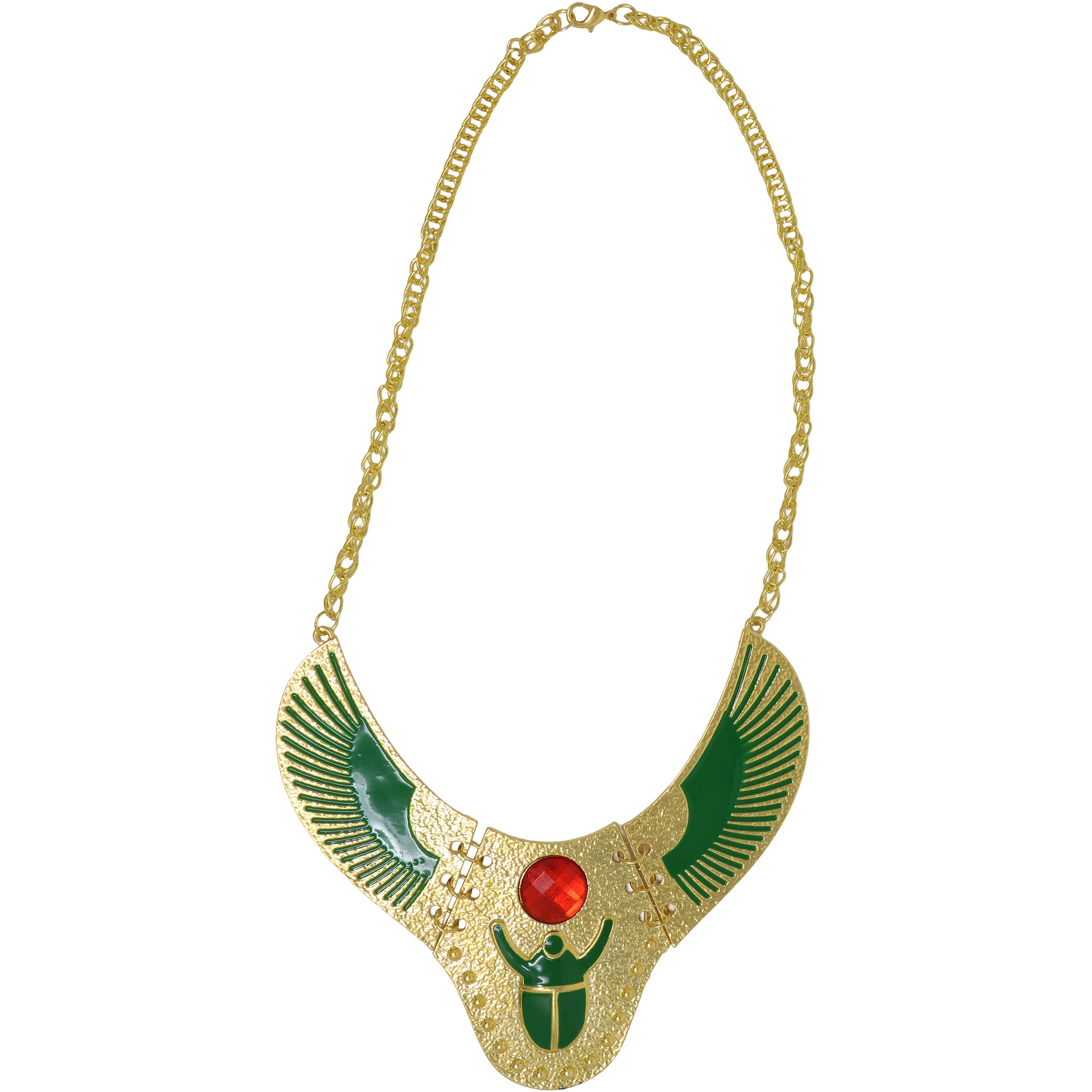 Collier de style égyptien inspiré par Cléopâtre. Son motif ailé, ses touches vertes et sa pierre centrale rouge apportent une note de couleur et d'élégance. Idéal pour parfaire votre tenue de reine égyptienne lors du Carnaval, de soirées à thème, de représentations théâtrales ou de séances photo, il crée un impact visuel immédiat et sublime tout costume inspiré de l'Égypte antique.