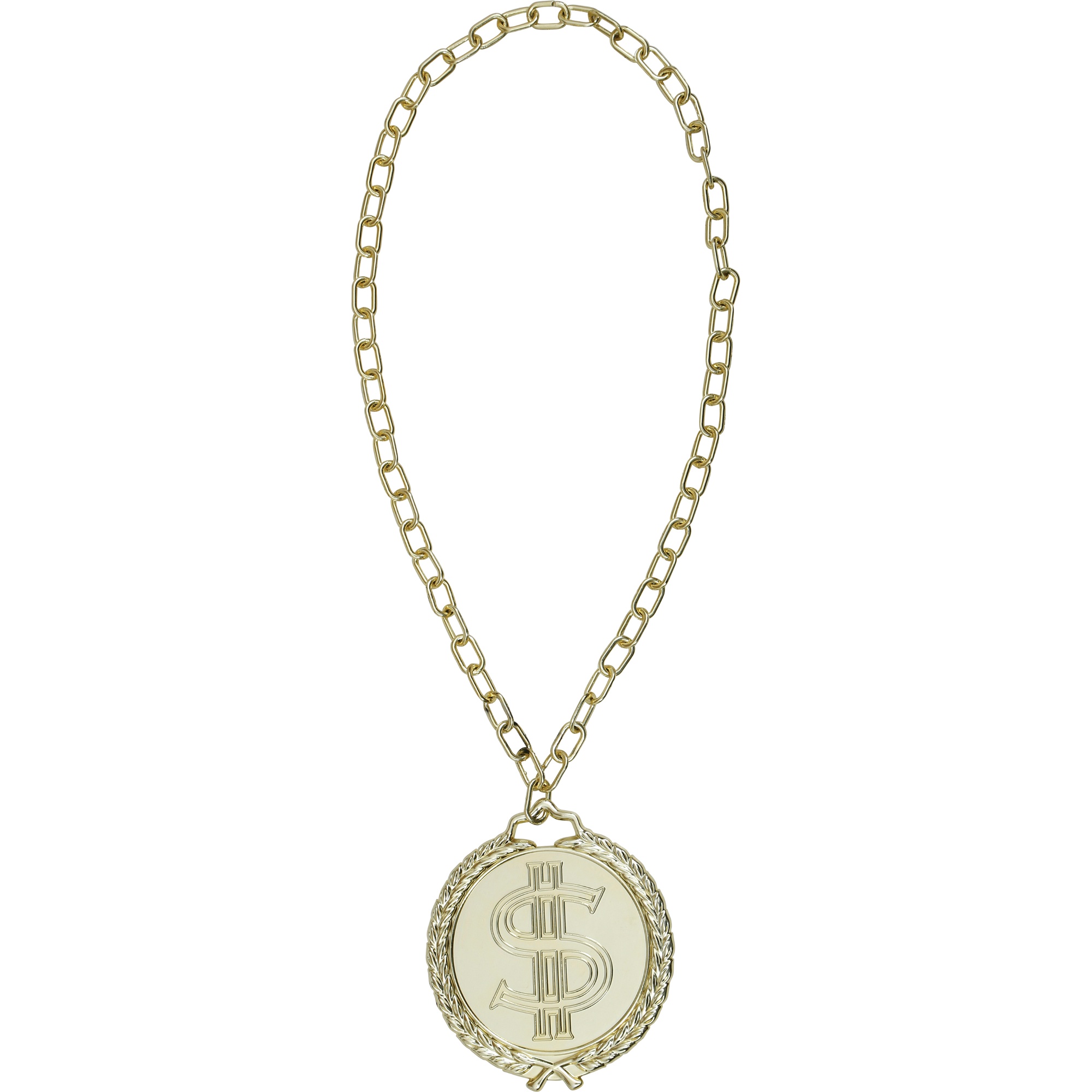 - Médaillon arborant le symbole $ imposant pour un look de rappeur qui attire les regards.