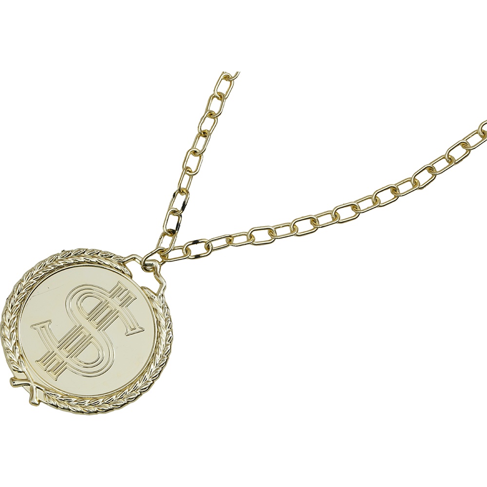 Grand médaillon au symbole dollar pensé pour donner une touche ostentatoire à votre déguisement de rappeur. Très visible et facile à assortir, il est parfait pour le Carnaval, les soirées à thème et les performances. Conçu pour les adultes à la recherche d'un accessoire amusant et impactant. L'accessoire idéal pour les photocalls, les séances photo et les enterrements de vie de garçon.