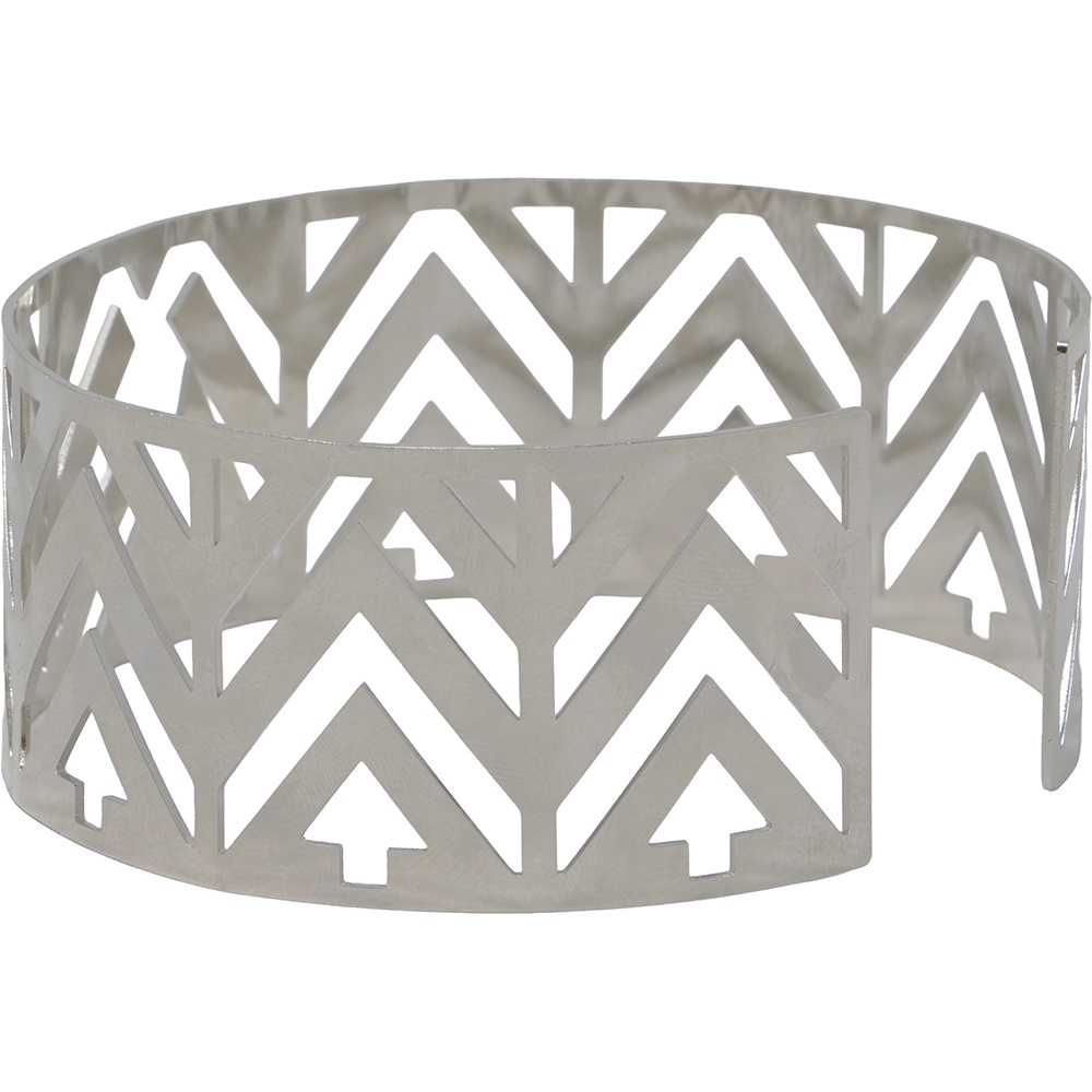 • Design rigide et géométrique avec finition métallique réfléchissante pour un look futuriste.