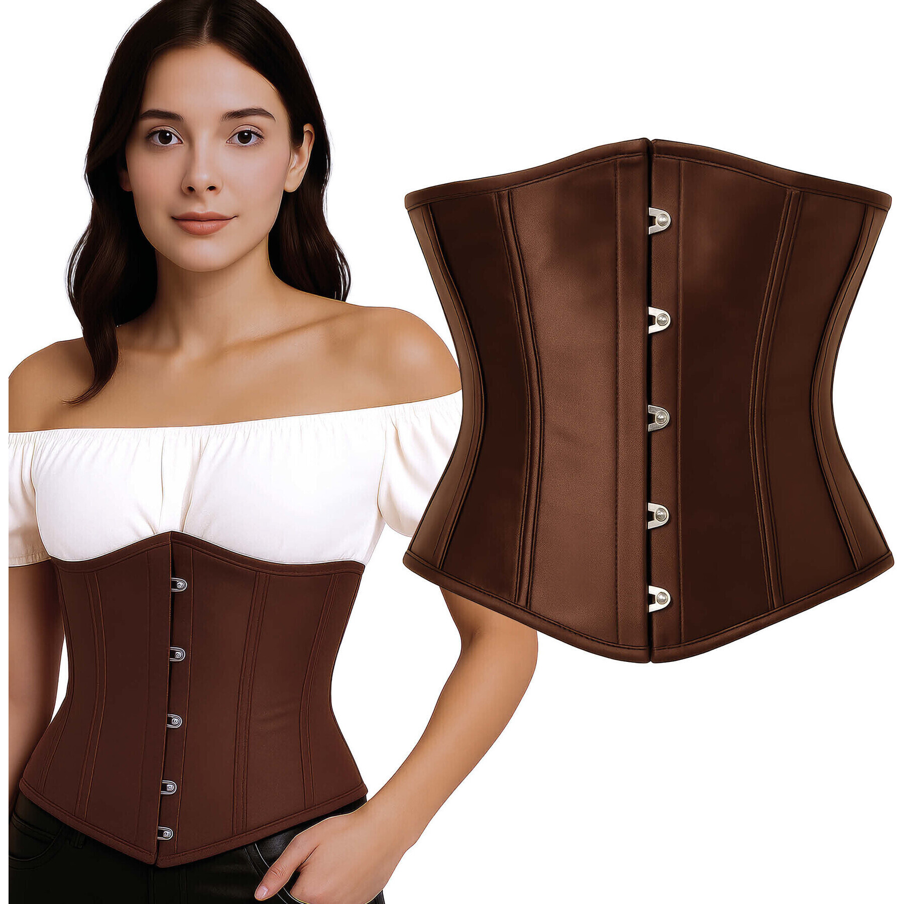 Las partes metálicas (busk, ballenas, ganchos) pueden pinchar, cortar o clavarse si están dañadas; revise periódicamente y deje de usar si hay partes rotas, sobresalientes o deformadas.