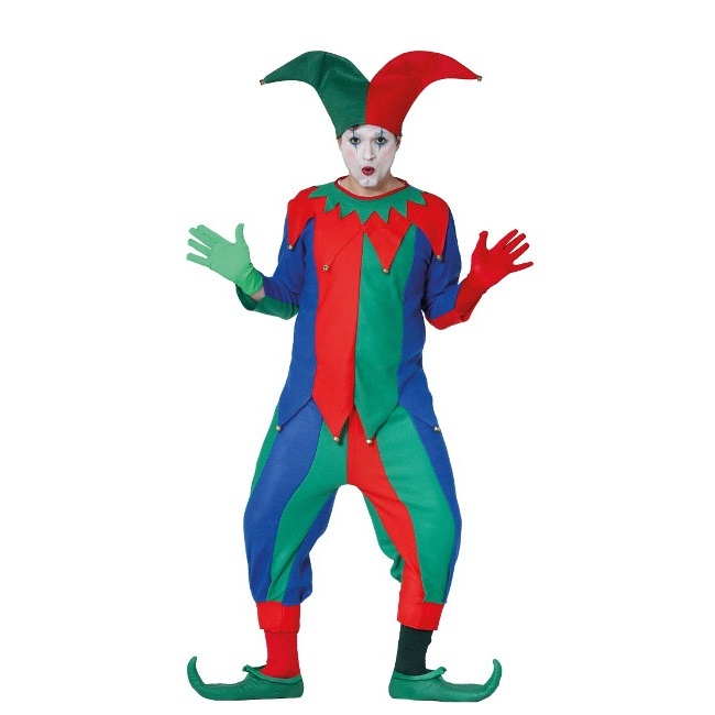 Costume de bouffon original et coloré, idéal pour les fêtes à thème médiéval.