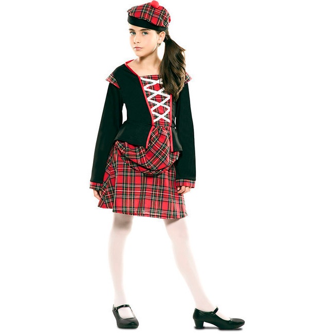 Déguisement d'écossaise rouge avec chapeau pour fille