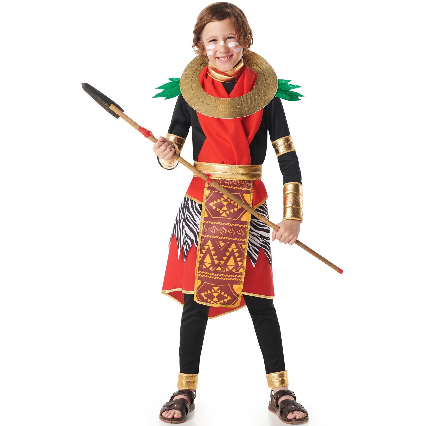 Un modèle impressionnant de Massaï africain pour enfant, utilisable aussi bien pour un garçon que pour une fille. Ce costume ne manque d'aucun détail.