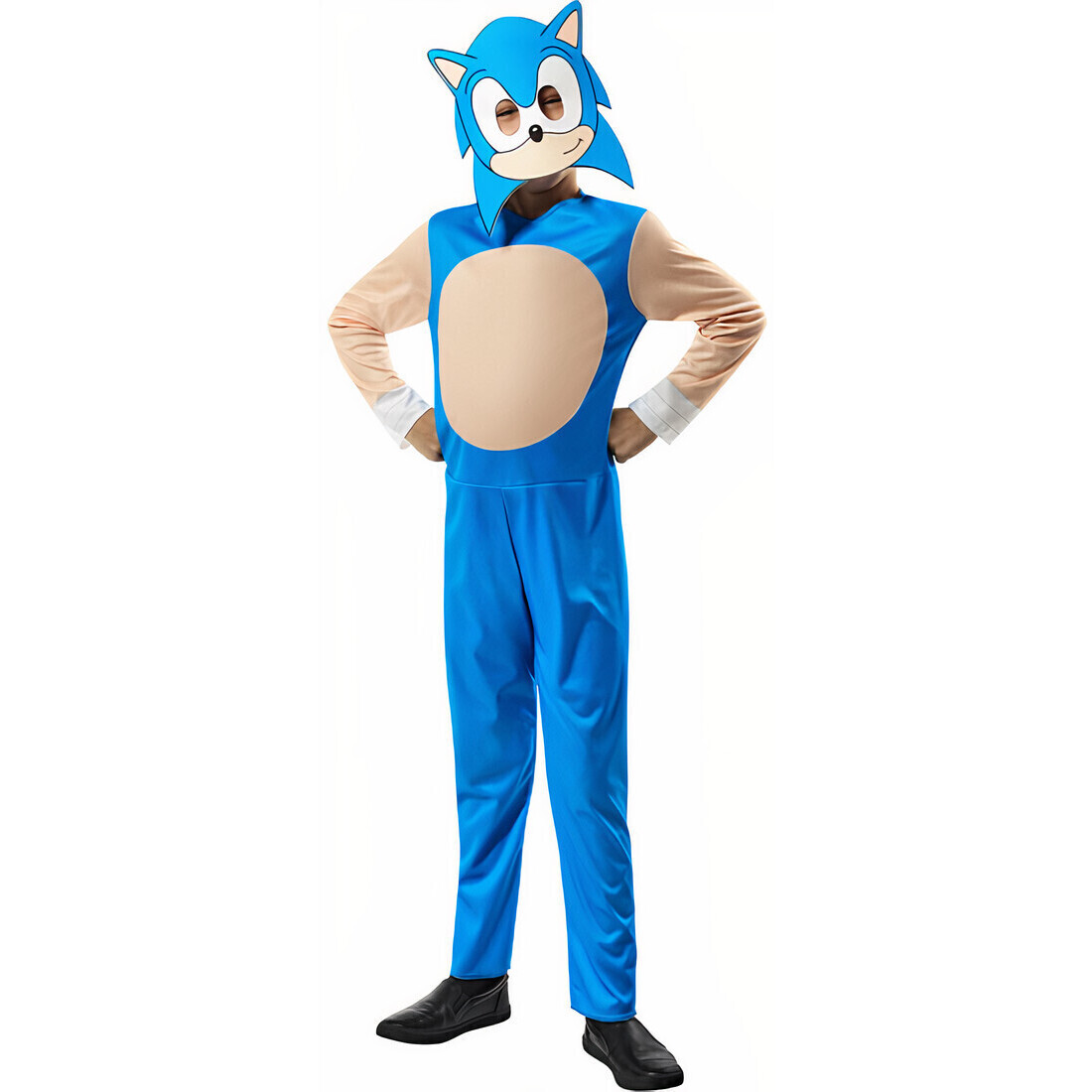 Costume sous licence officielle du personnage Sonic du film The Hedgehog, incluant un masque.