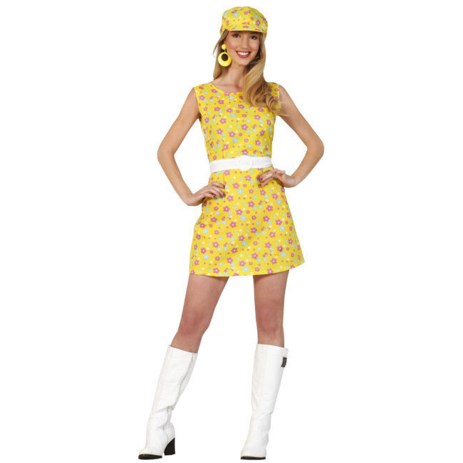 Déguisement hippie avec chapeau années 60 jaune pour femme