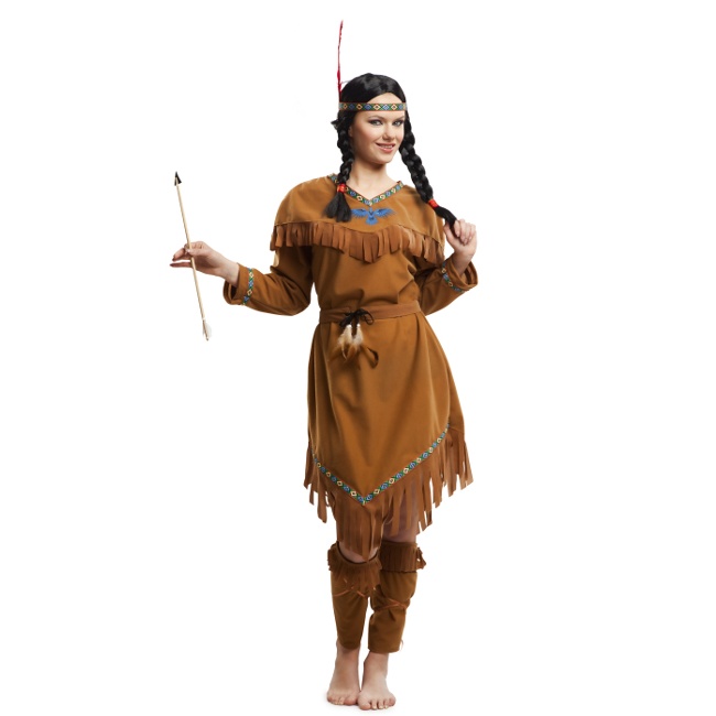 Il se compose d'une robe marron à manches longues avec des franges sur le devant et à l'extrémité de la robe.