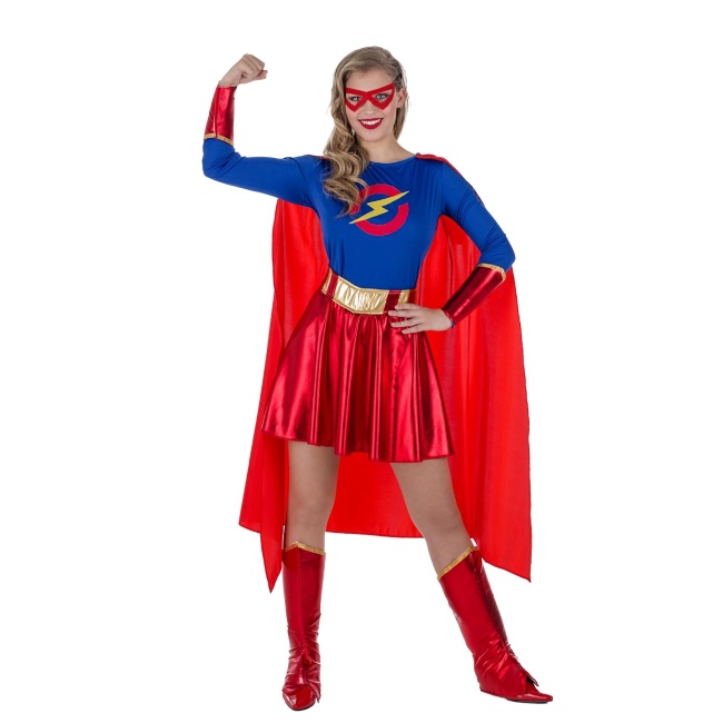 Sauvez le monde avec ce déguisement de super-héroïne avec cape, d'esthétique similaire à Flash et Superman en version féminine. Vous triompherez au carnaval, à Halloween et lors de fêtes à thème en général !