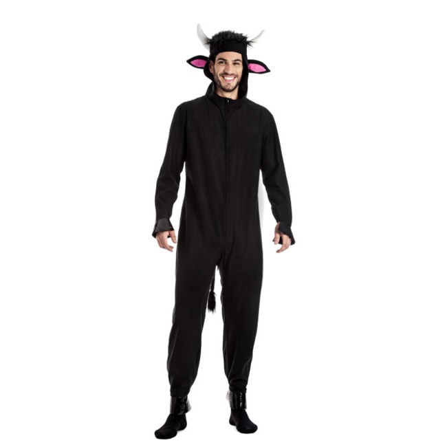 Ce déguisement est composé d'une combinaison noire avec un tissu similaire à un pyjama, confectionnée avec des manches et des jambes longues, facile à ajuster grâce à une fermeture éclair frontale. Son design est orné d'une queue à l'arrière, de décorations similaires aux poignets et à la partie inférieure des jambes, et d'une capuche avec oreilles, cheveux et cornes de taureau.
