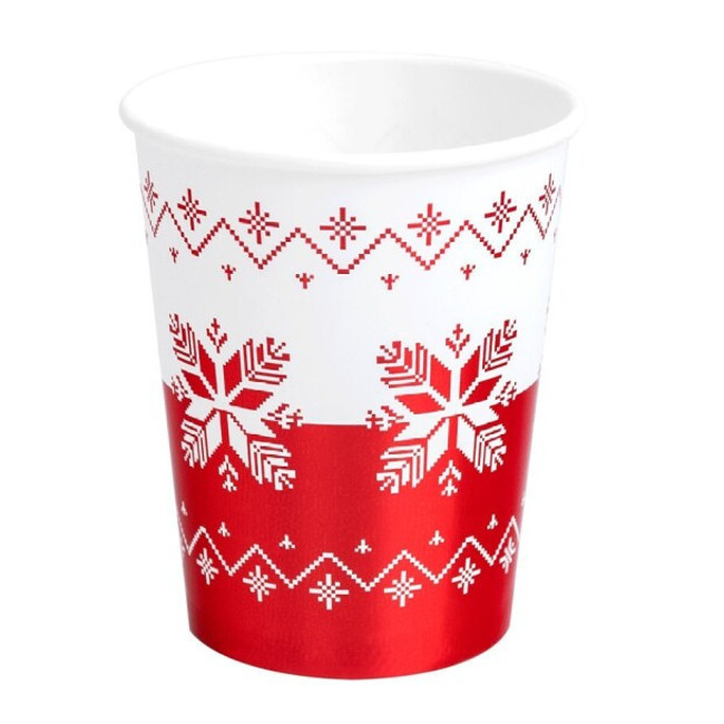 Gobelets de 270 ml de Noël avec broderie rouge - 6 unités