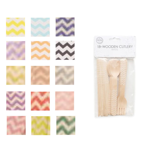 Couverts en bois avec zig zag coloré - 18 pcs.