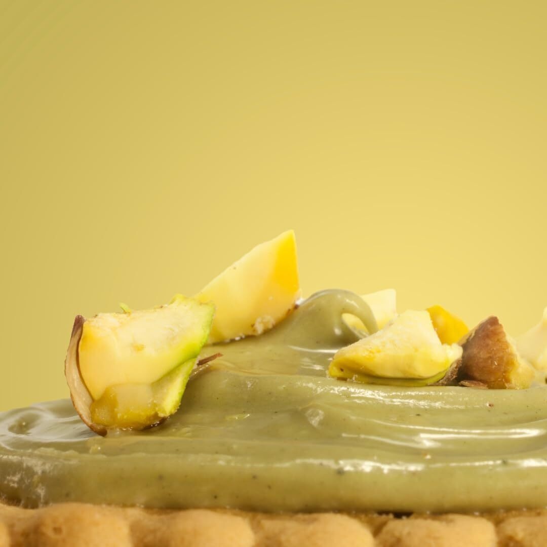 Ingrédients: Sucre, huiles et graisses végétales en proportions variables (huile de palme, huile de tournesol, huile de carthame, beurre de karité), Pâte de pistache (18%), Lactosérum, lait écrémé en poudre, Émulsifiant: lécithine de tournesol (E322), Arôme, Sel.