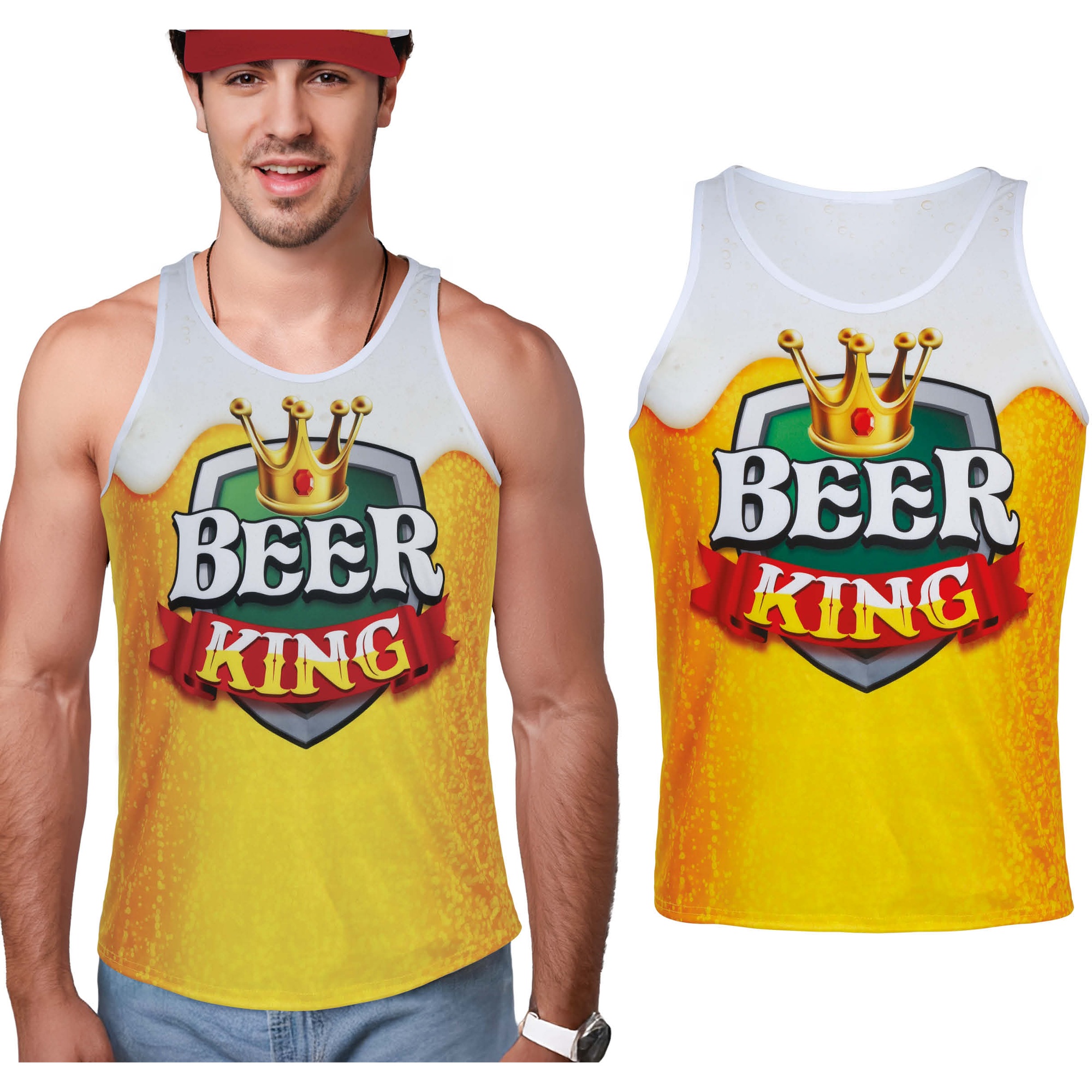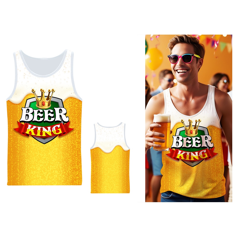 Faites-vous remarquer à la fête avec le débardeur Beer King, un modèle inspiré d'une chope de bière et doté d'un logo couronné qui apporte une touche amusante et festive.