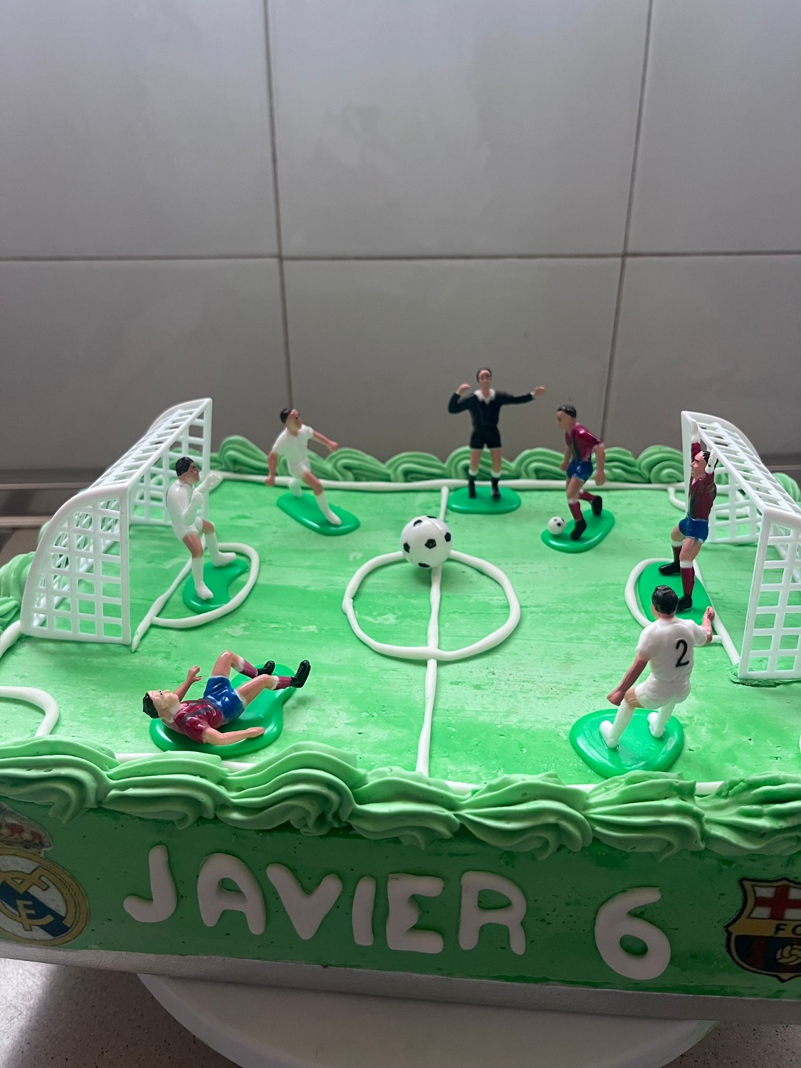 Ce produit se compose de 4 figurines de footballeurs avec des maillots et des shorts blancs et bleu grenat, 1 arbitre avec un uniforme noir et 2 buts. Chaque figurine est dotée d'un socle vert qui facilite sa mise en place sur le gâteau.