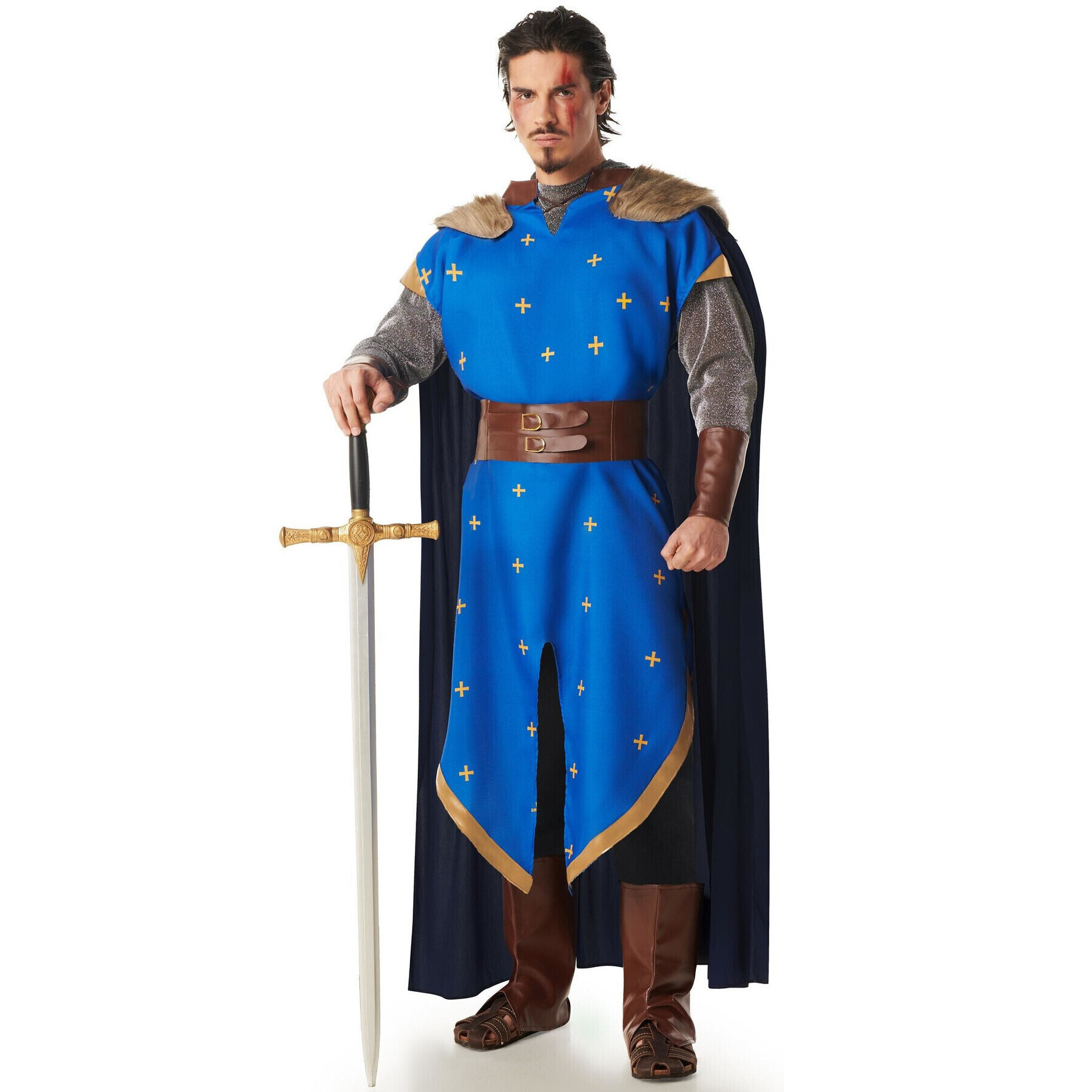 Déguisement de chevalier médiéval chrétien bleu pour homme
