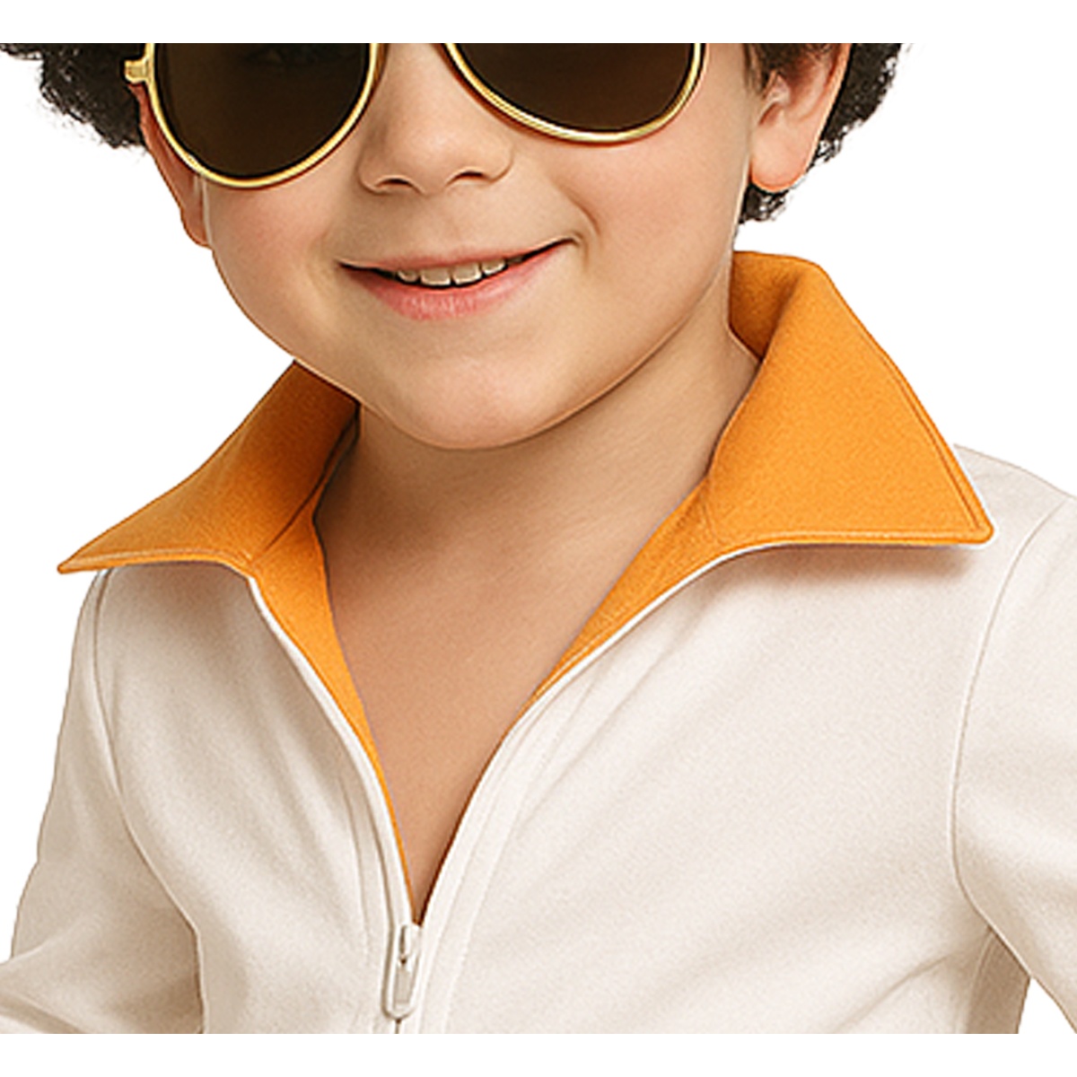 Déguisement officiel inspiré de l'emblématique Roi du Rock, avec finition dorée et détails contrastés orange. Design rétro avec col à revers et pantalon évasé qui restituent la silhouette iconique de l'artiste. Conçu en polyester léger pour permettre à votre enfant de bouger librement lors des jeux et des représentations. Idéal pour les fêtes, les spectacles scolaires et le Carnaval.