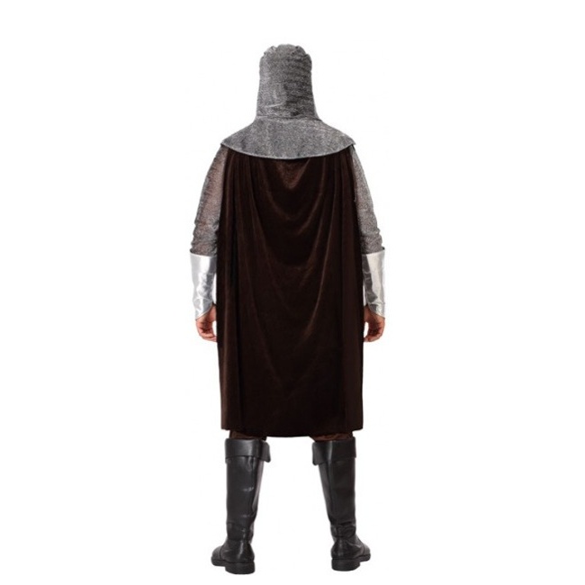 Ce déguisement est composé d'un bonnet et d'un bavoir attaché au même, avec un style similaire à une cotte de mailles. Il est complété par une cape assortie et un t-shirt marron avec des manches en maille et un symbole de croix rouge sur la poitrine. Il est complété par un pantalon marron avec une taille élastique.