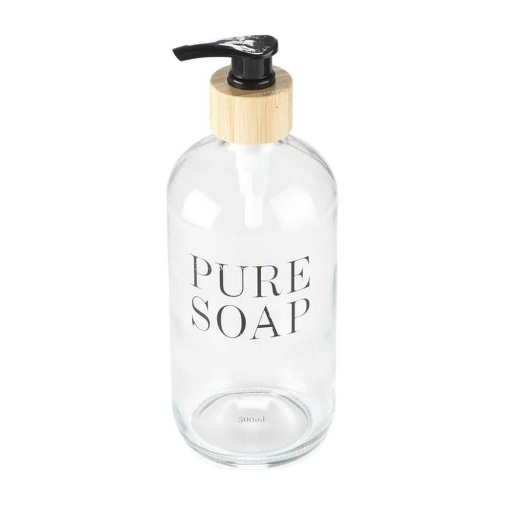 • Design élégant en verre transparent avec sérigraphie 'PURE SOAP'.