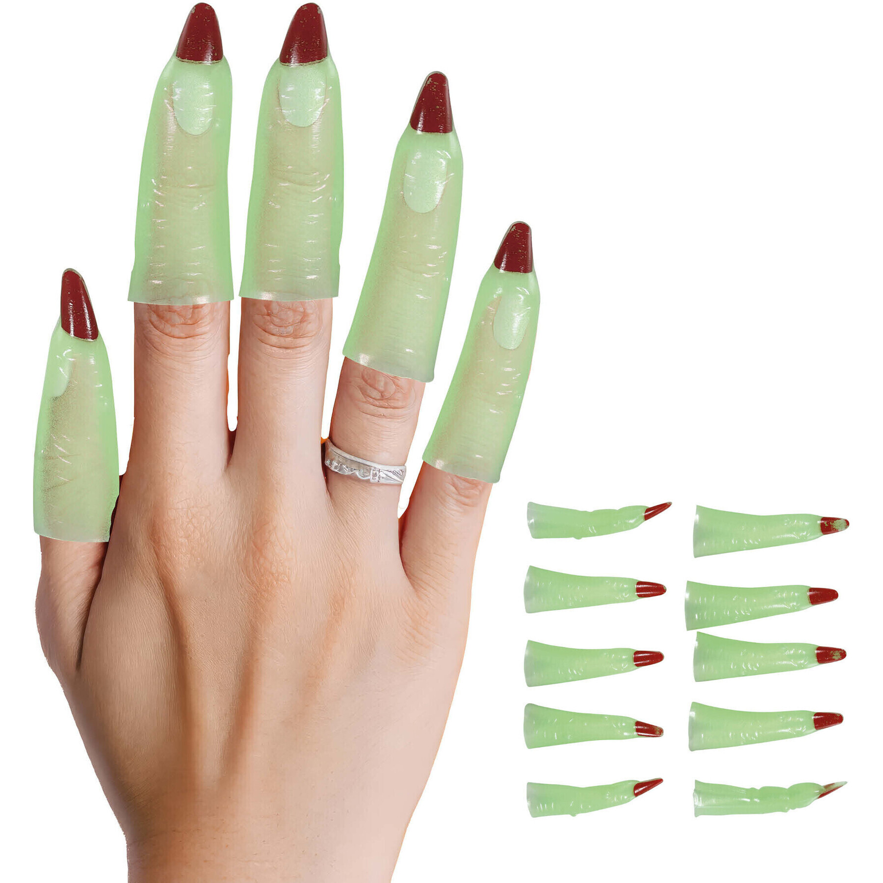 Doigts avec griffes monstrueuses vertes et marrons - 10 unités