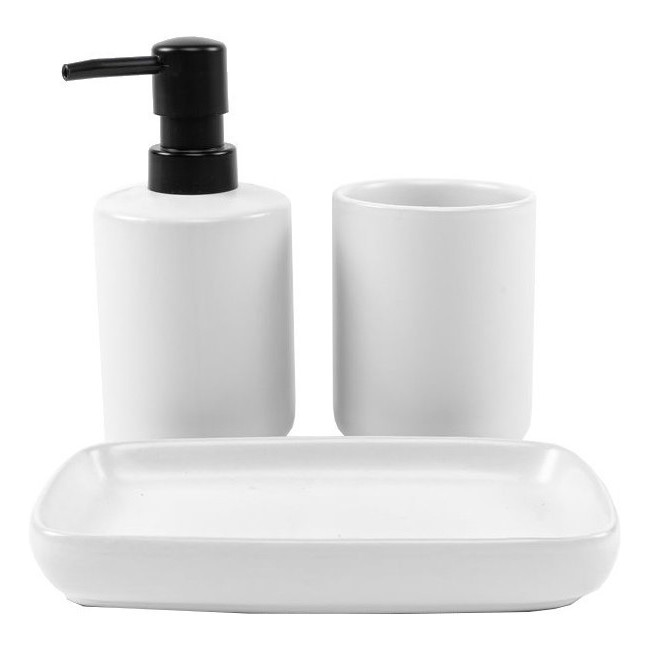 • Inclus: distributeur de savon, porte-brosse à dents et porte-savon