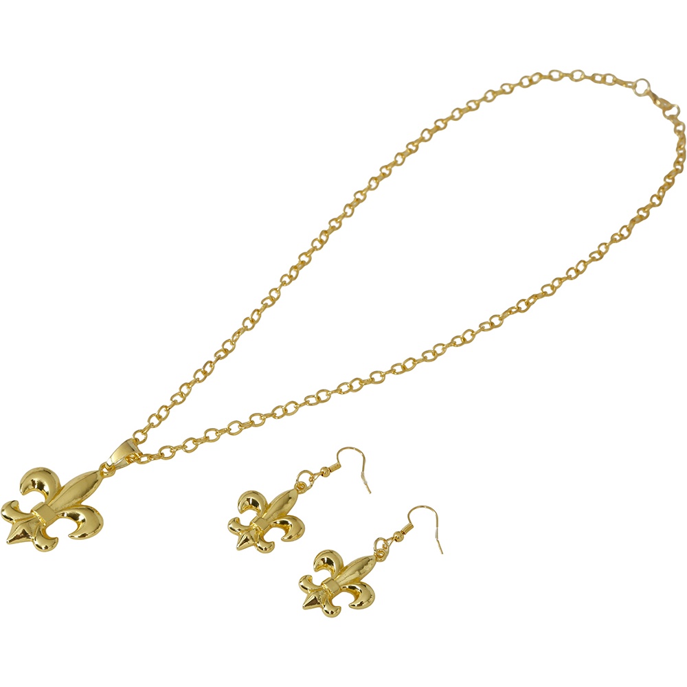 Élégant ensemble inspiré de la joaillerie de la Rome antique, doté d'un motif distinctif en fleur-de-lys. Sa finition dorée soigneusement travaillée apporte un éclat qui mettra en valeur vos tenues historiques ou de fantaisie. Les pièces sont légères et confortables, conçues pour vous offrir une touche impériale lors de vos célébrations et événements.